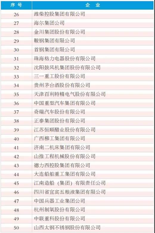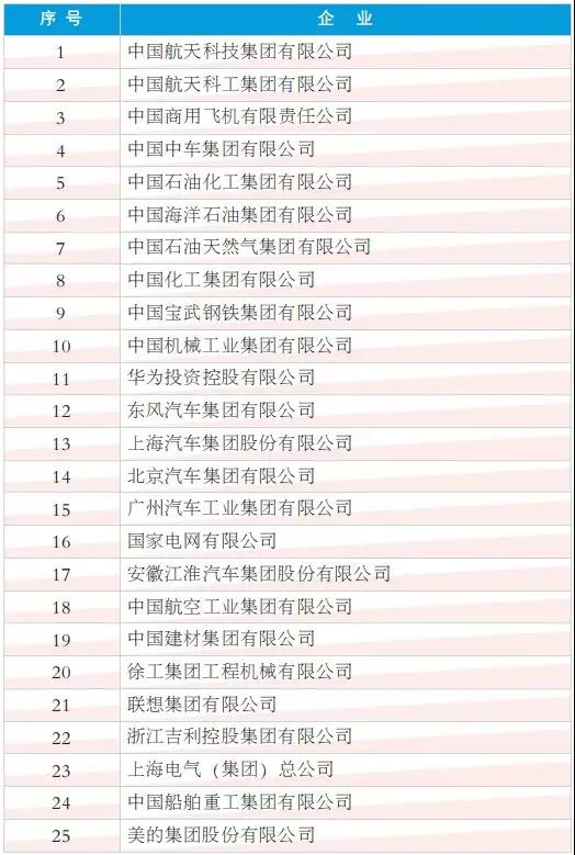 2018年度中國工業影響力企業(排名不分先后)
