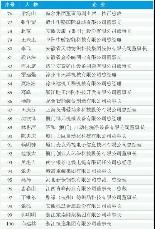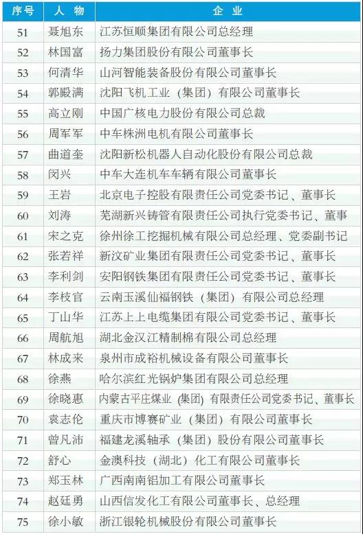 2018年度中國工業影響力人物(排名不分先后)